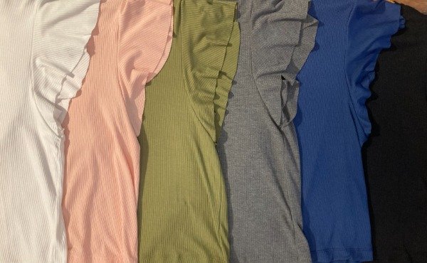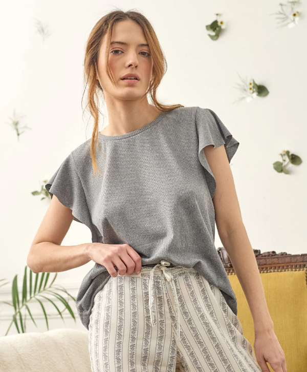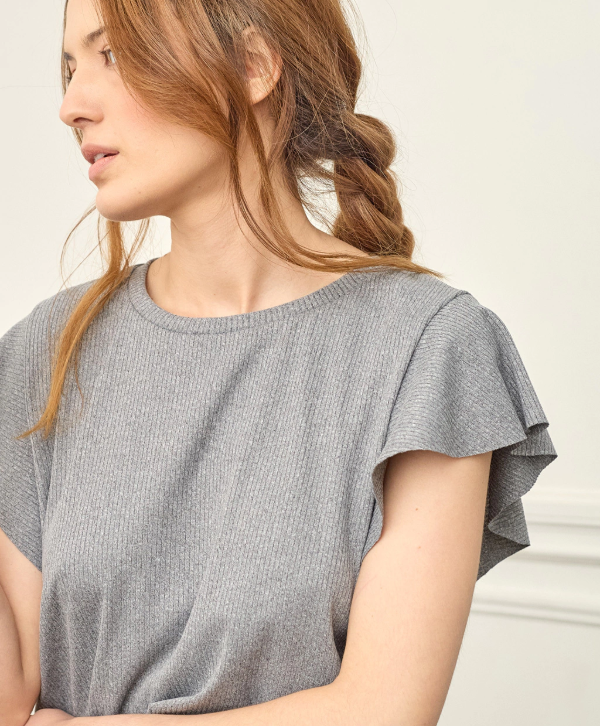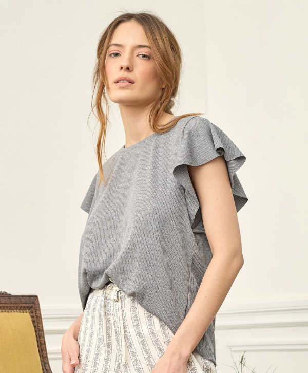 Musculosa suelta de viscosa/poliéster tipo morley con volado en mangas.